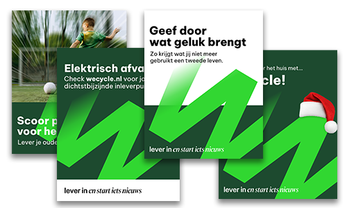 Download hier middelen om consumenten of bedrijven te stimuleren om afgedankte apparaten, lampen en batterijen gratis en veilig via de vele Wecycle-inleverpunten te recyclen.